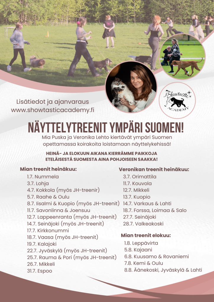 Näyttelytreenit ympäri Suomen – heinä- ja elokuu