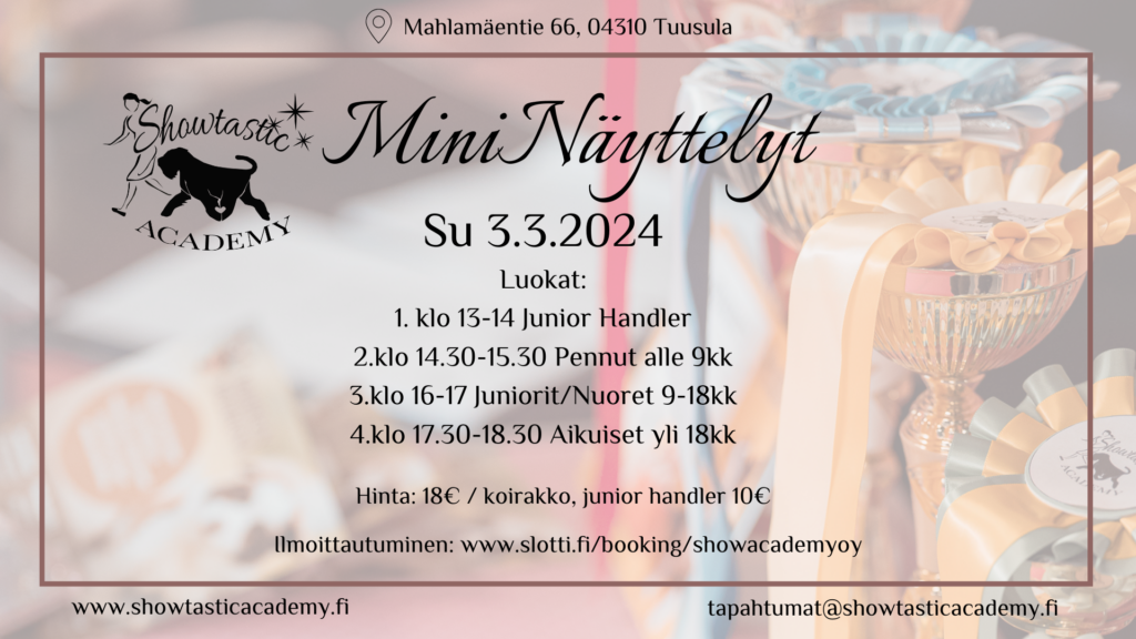 MiniNäyttelyissämme ei järjestetä BIS-kehää, joten vältyt turhalta odottamiselta.