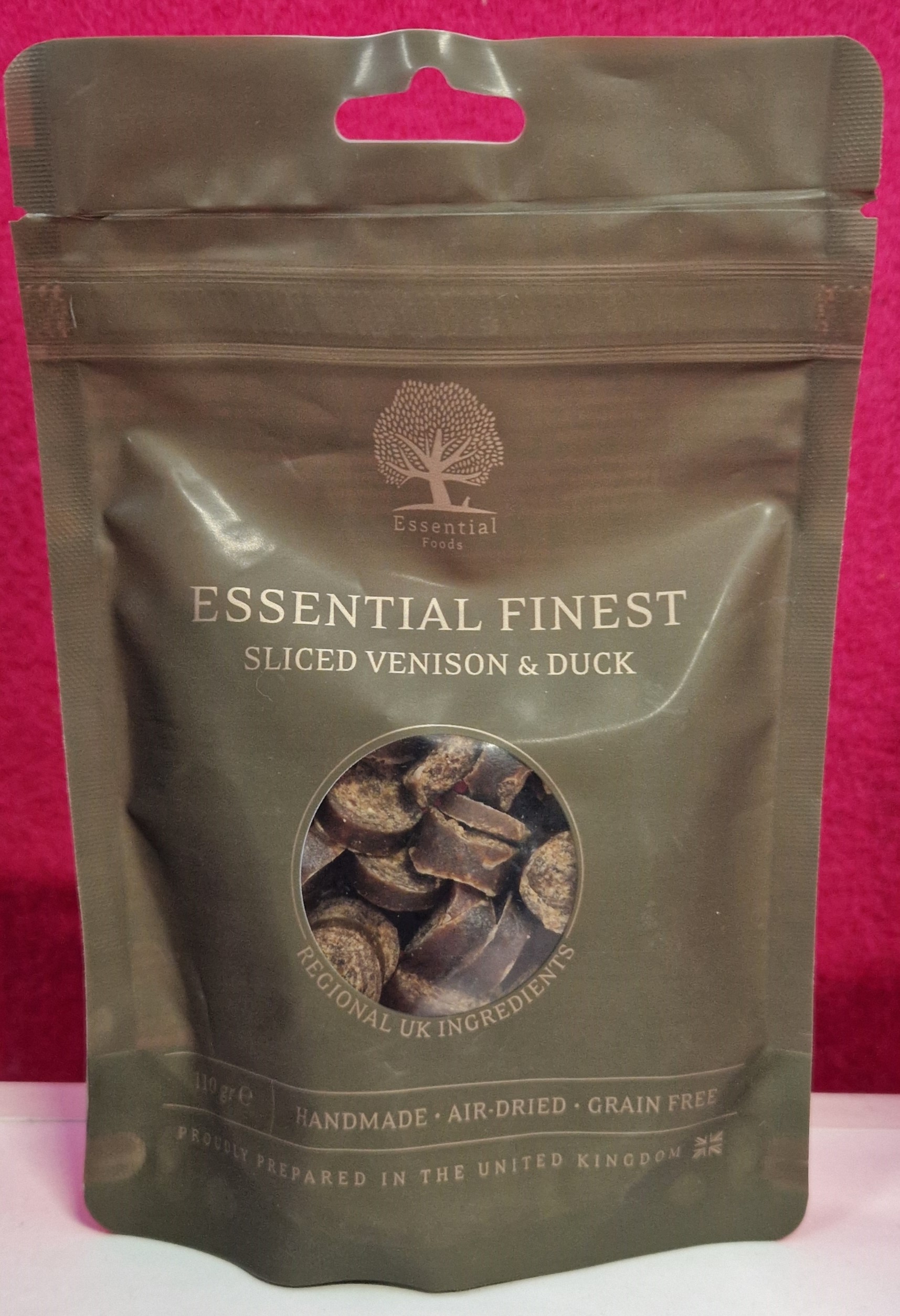 SISÄLTÖ: peura, ankka, bataatti, glyseroli, peruna, luontainen säilöntäaine.