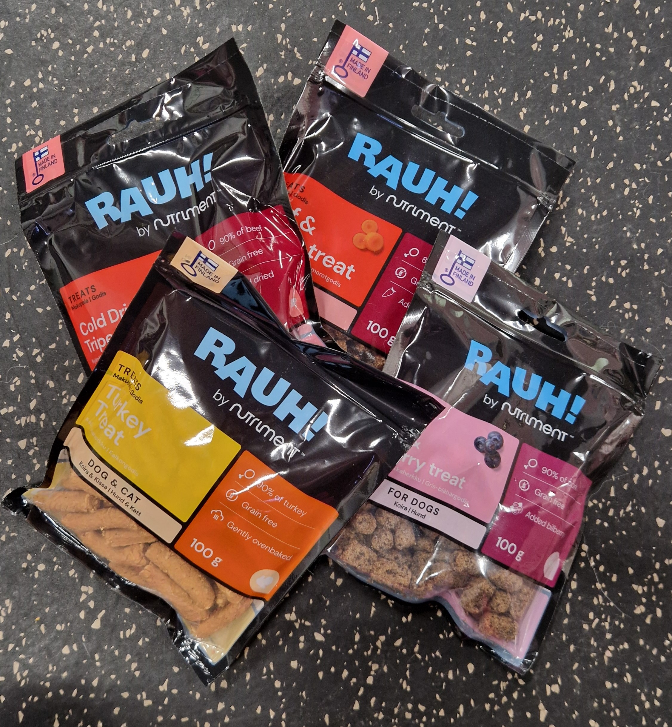 Koostumus: Suomalaista naudanmahaa, kasviskuitua, kasviglyseriini.